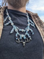 From long forgotten frigid lands, one cannot help but think of ghosts and cold, wintery nights when they look at this necklace. The two strands are intertwined, making adjustment easy, and the inside of the necklace is made of nylon-coated steel wire, lending durability to this rugged piece.