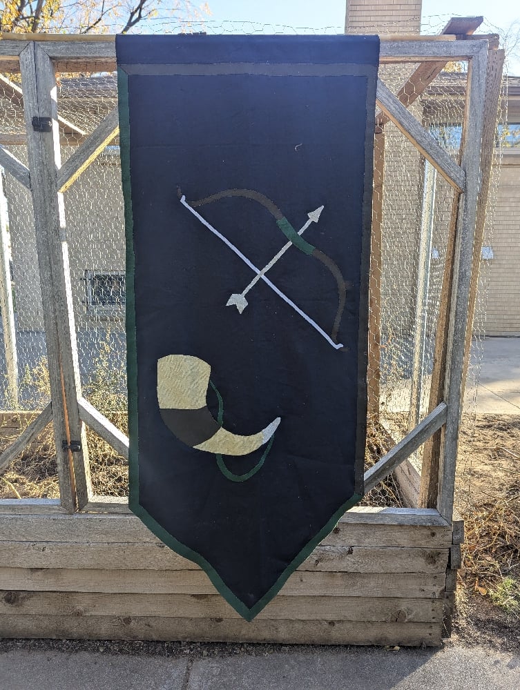 A medieval canvas banner made for the house of the Lodge, a large group of hunters and legend keepers at Hynafoll! Made of 100% cotton canvas, this banner is made to last, and to be an icon and an eye catcher for years to come! It comes with a banner pole to hang as a decorative banner and has a slit on the back for conversion into a war banner, if desired.