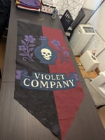 A medieval canvas banner made for the house of the Violet Company, the assassins and poisoners at both Hynafol and Bicolline! Made of 100% cotton canvas, this banner is made to last, and to be an icon and an eye catcher for years to come! It comes with a banner pole to hang as a decorative banner and has a slit on the back for conversion into a war banner, if desired.